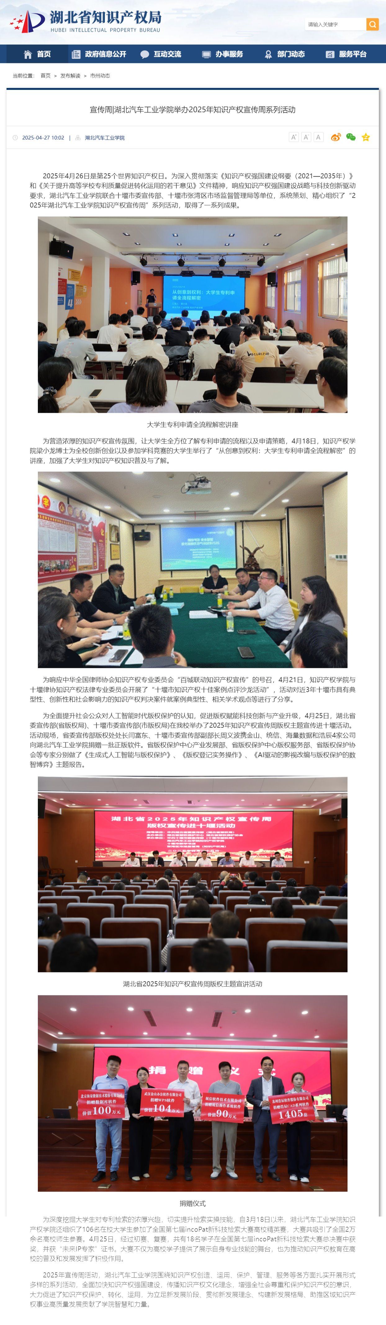 【湖北省知识产权局】湖北汽车工业学院举办2025年知识产权宣传周系列活动