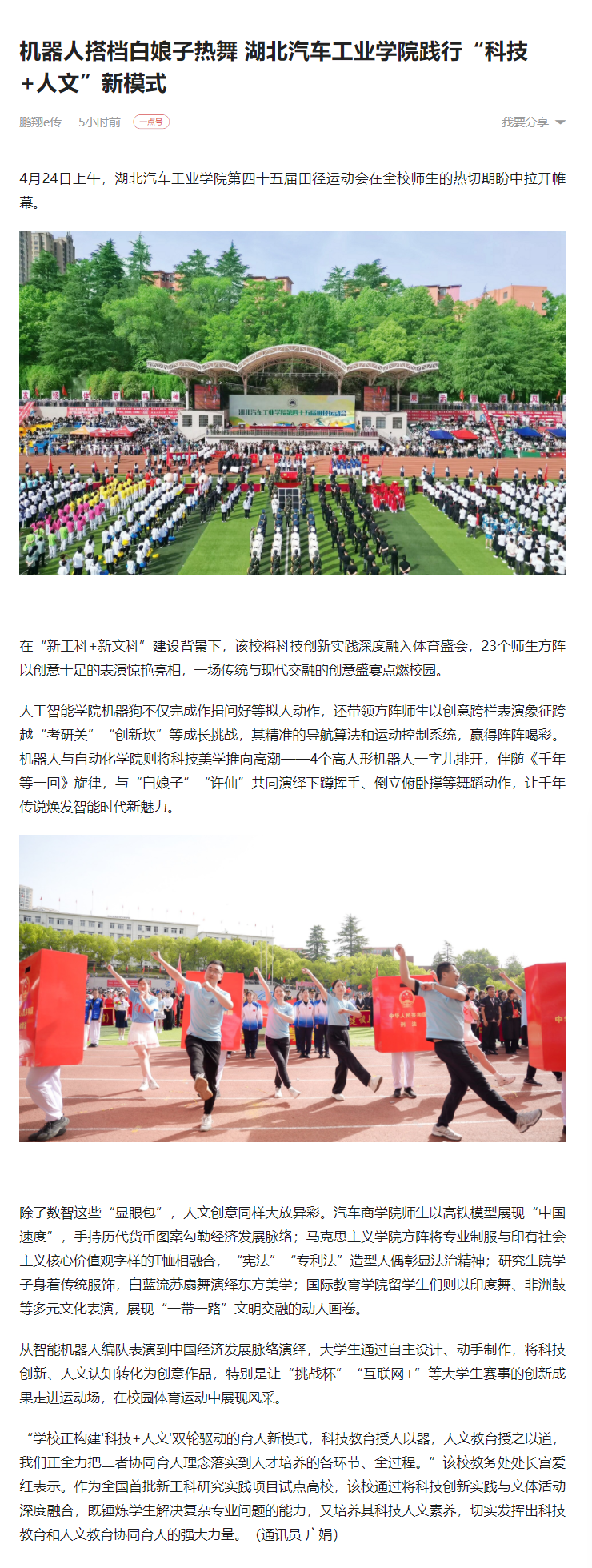 【一点资讯】机器人搭档白娘子热舞 湖北汽车工业学院践行“科技+人文”新模式