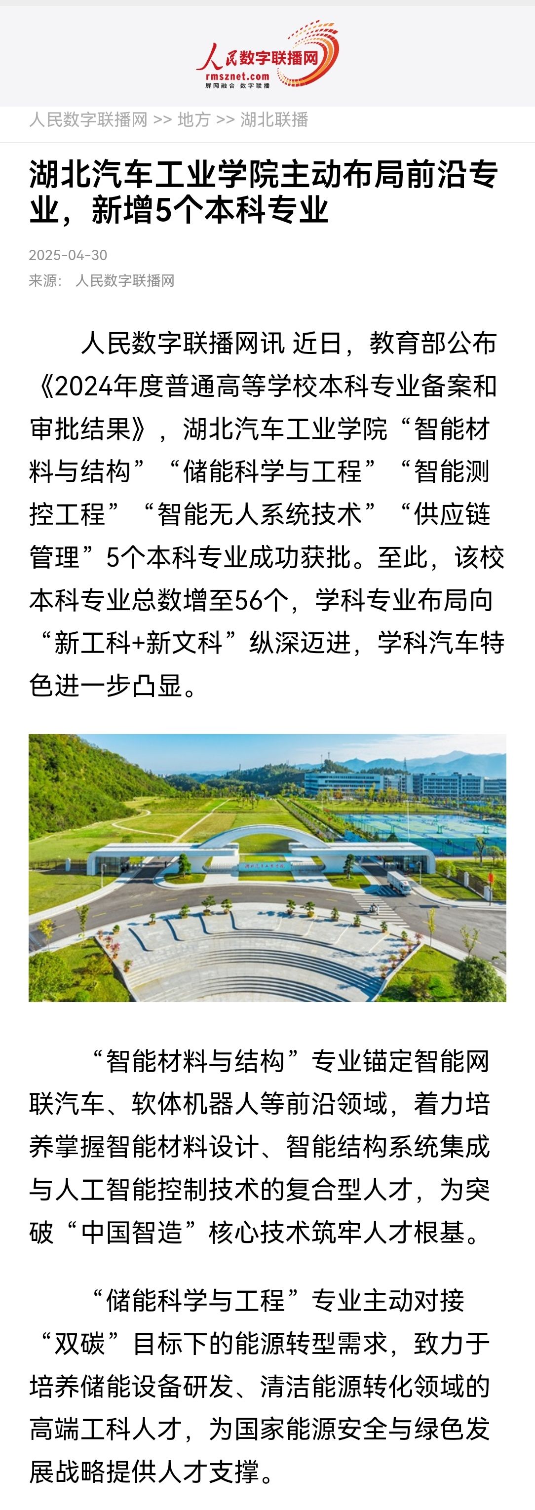 【人民数字联播网】湖北汽车工业学院主动布局前沿专业,新增5个本科专业