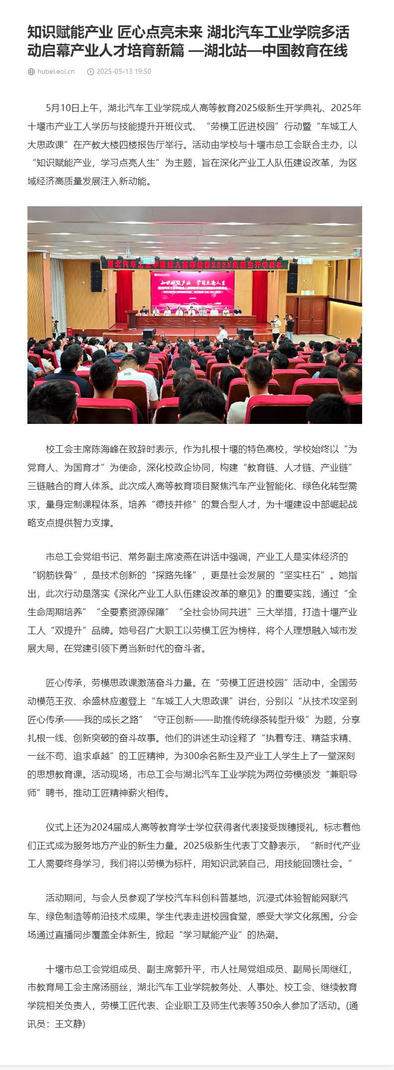 【中国教育在线】知识赋能产业 匠心点亮未来 湖北汽车工业学院多活动启幕产业人才培育新篇 —湖北站—中国教育在线