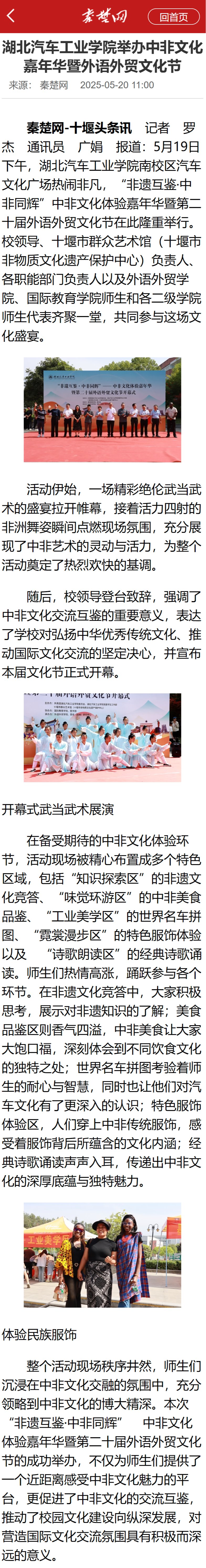 【秦楚网】湖北汽车工业学院举办中非文化嘉年华暨外语外贸文化节