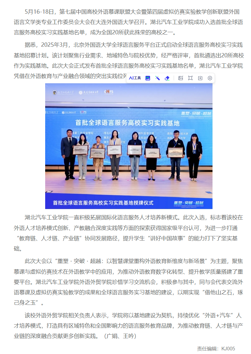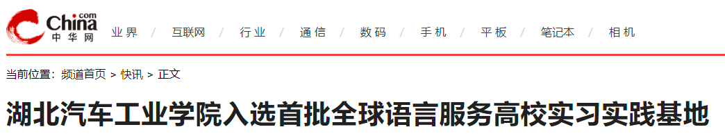 【中华网】湖北汽车工业学院入选首批全球语言服务高校实习实践基地