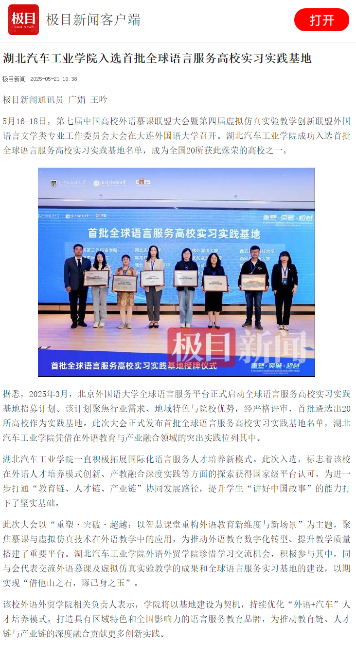【极目新闻】湖北汽车工业学院入选首批全球语言服务高校实习实践基地