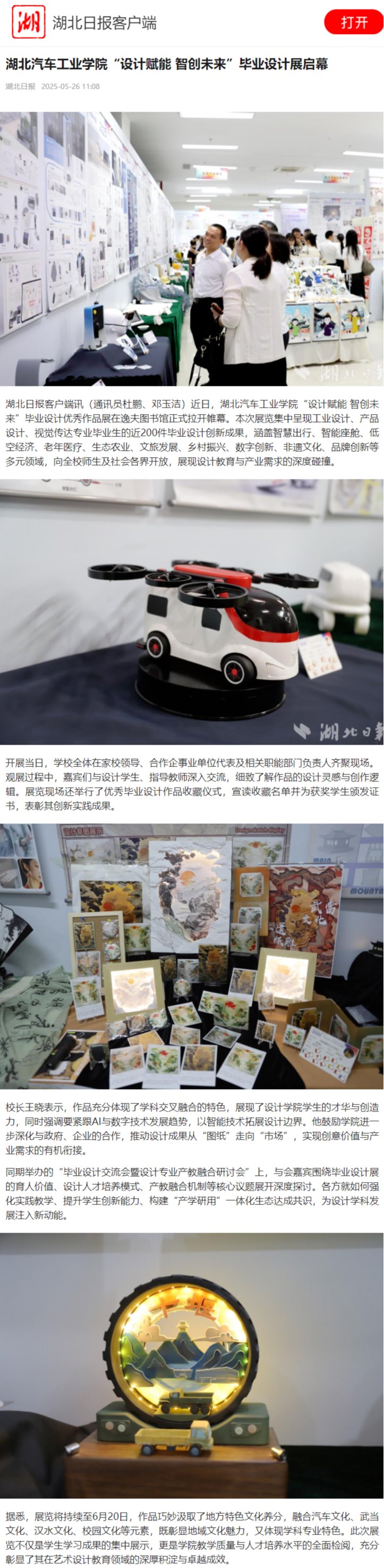 【湖北日报】湖北汽车工业学院“设计赋能 智创未来”毕业设计展启幕