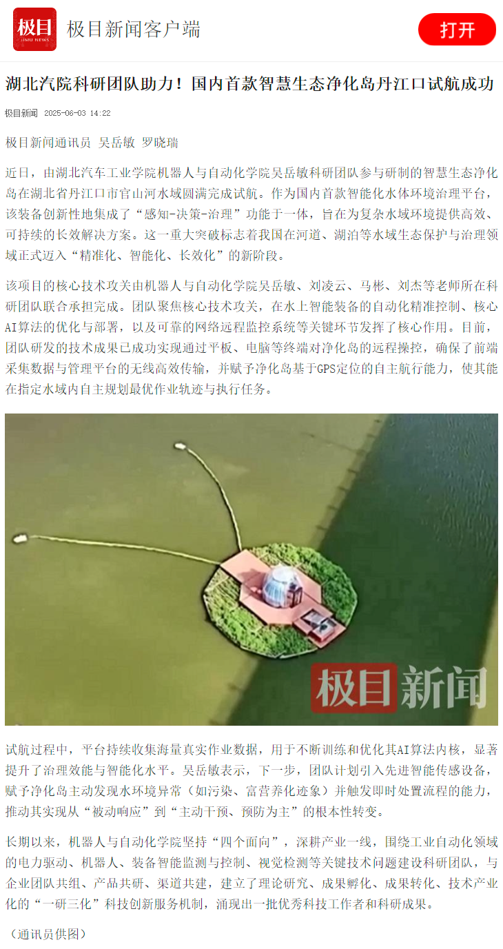 【极目新闻】湖北汽院科研团队助力!国内首款智慧生态净化岛丹江口试航成功