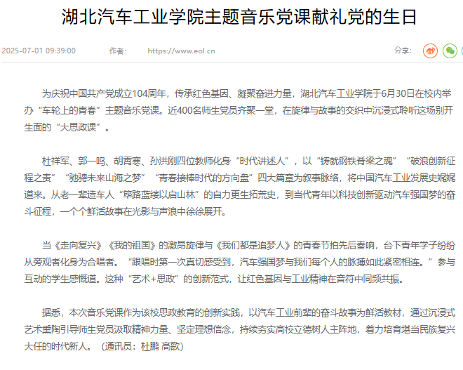 【中国教育在线】湖北汽车工业学院主题音乐党课献礼党的生日