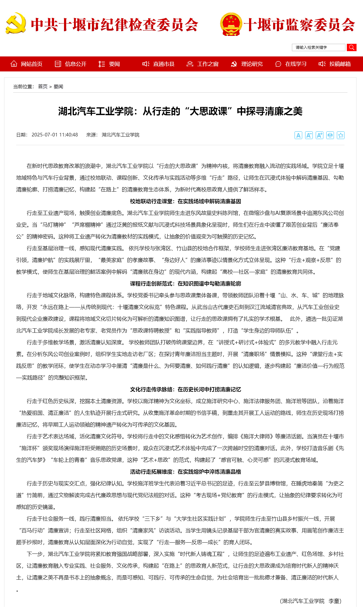 【十堰市纪委网站】湖北汽车工业学院:从行走的“大思政课”中探寻清廉之美
