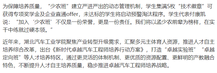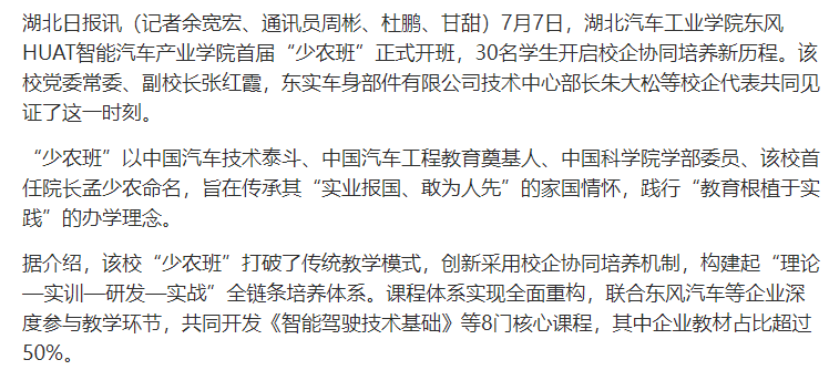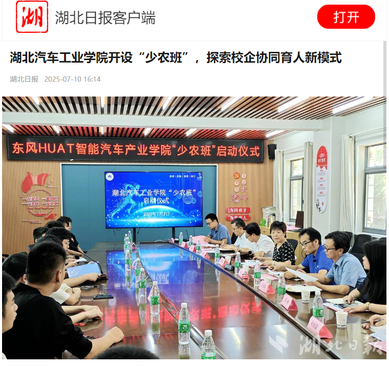 【湖北日报】湖北汽车工业学院开设“少农班”,探索校企协同育人新模式