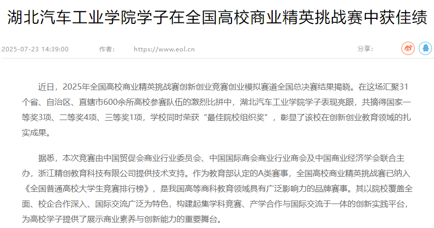 【中国教育在线】湖北汽车工业学院学子在全国高校商业精英挑战赛中获佳绩