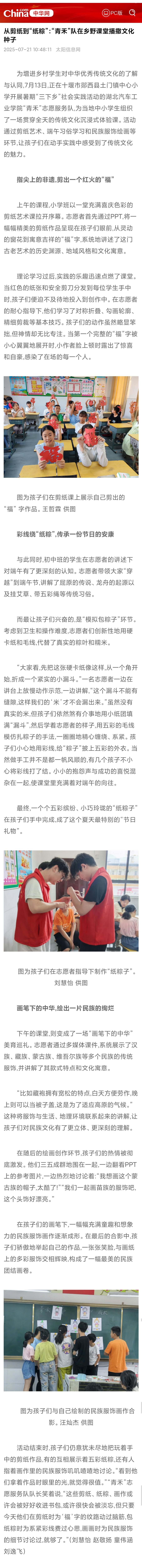 【中华网】从剪纸到“纸粽”:“青禾”队在乡野课堂播撒文化种子