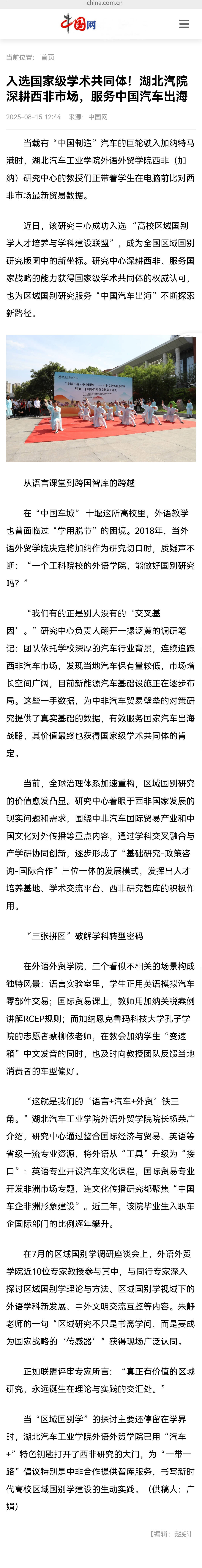 【中国网】入选国家级学术共同体!湖北汽院深耕西非市场,服务中国汽车出海