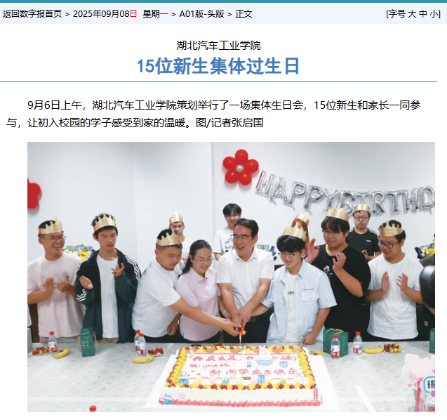 【十堰晚报】湖北汽车工业学院15位新生集体过生日