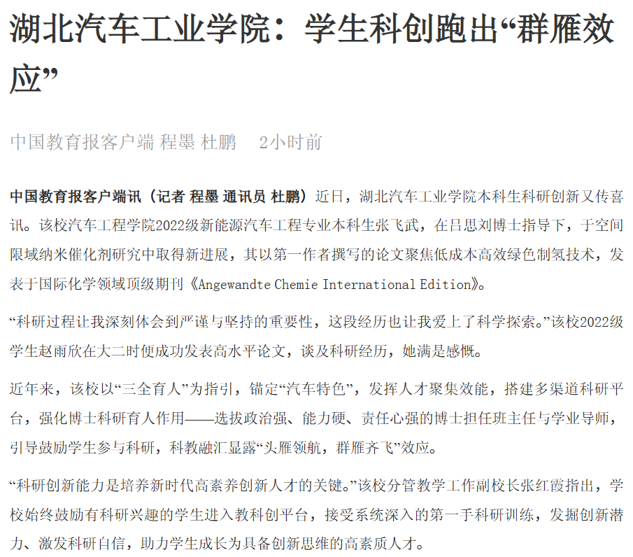 【中国教育报】湖北汽车工业学院:学生科创跑出“群雁效应”