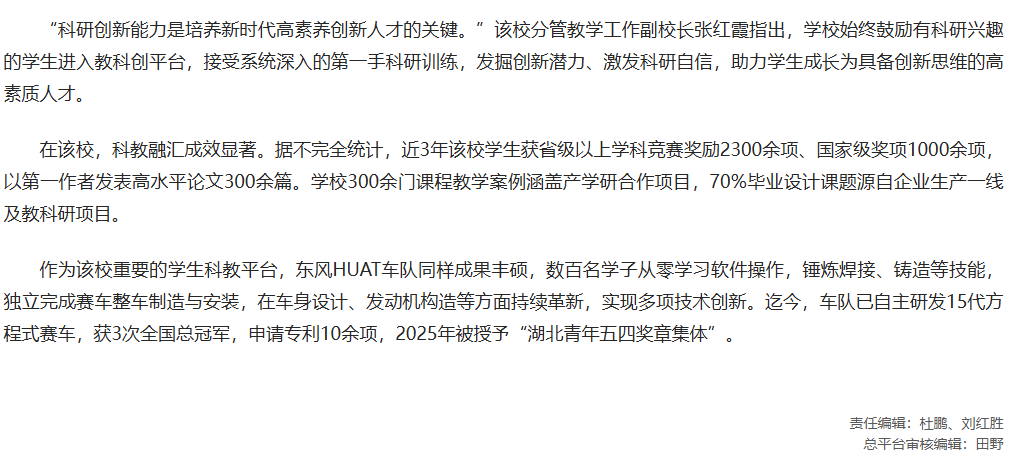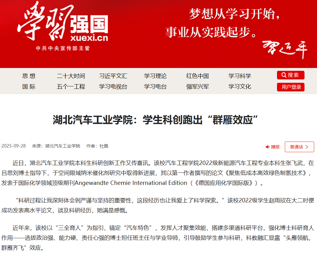 【学习强国总平台】湖北汽车工业学院:学生科创跑出“群雁效应”