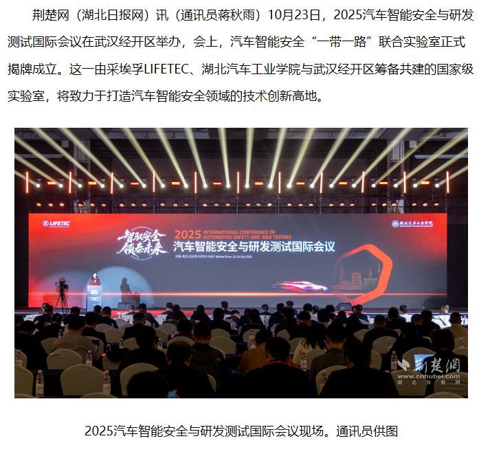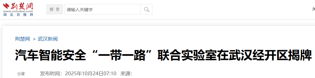 【荆楚网】汽车智能安全“一带一路”联合实验室在武汉经开区揭牌