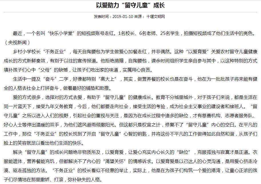 【十堰文明网】以爱助力“留守儿童”成长