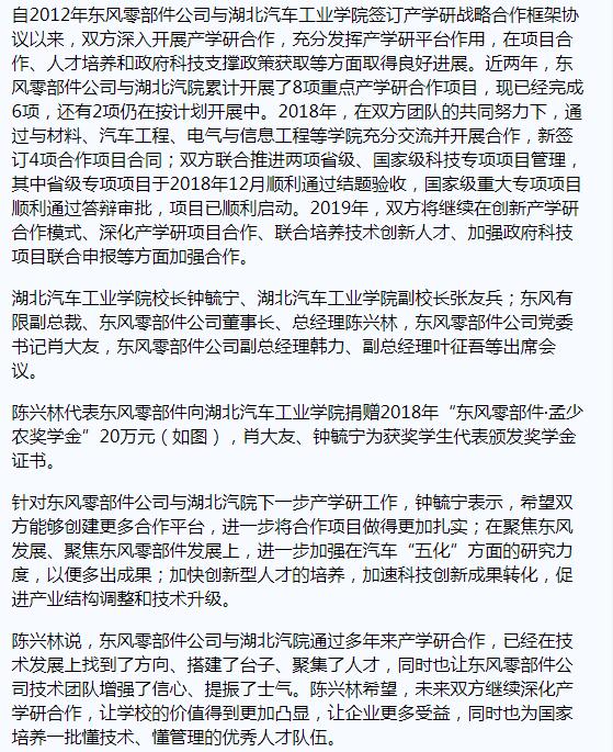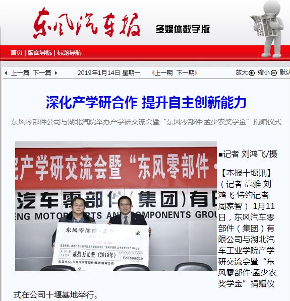 【东风汽车报】东风零部件与汽院举行产学研交流会暨孟少农奖学金捐赠仪式